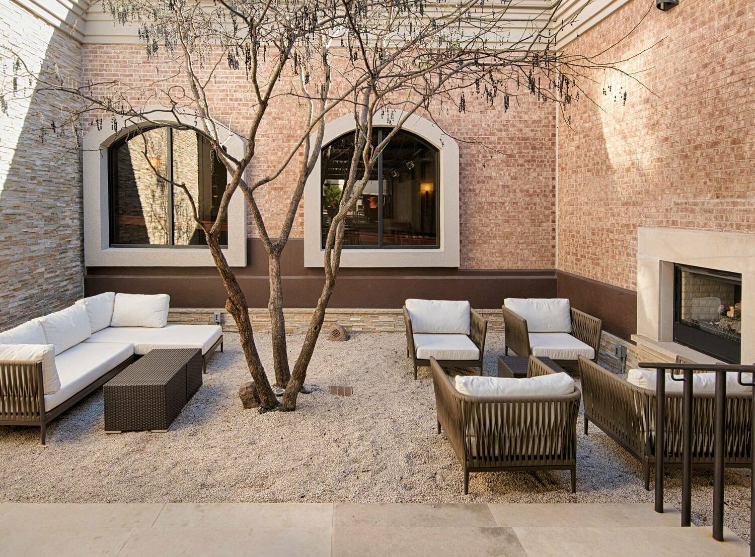 Find us off I-635 and President George Bush Turnpike, near shops and restaurants. Toyota Music Factory, Cypress Waters, and DFW Airport are less than 10 minutes away. Downtown Dallas is 20 minutes from our door. We have an outdoor pool with terrace, the Garden Bar & Grille, and meeting space. WiFi and parking are on us.